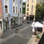 Center Plovdiv有1间卧室. 在浴室里配有淋浴,浴巾和毛巾等物品.